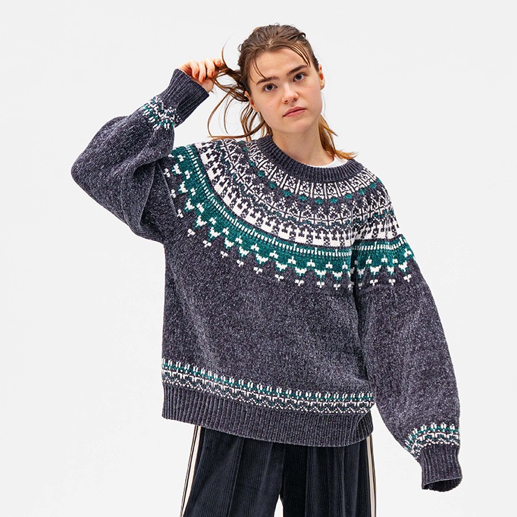 さりげなくラメが入ったノルディック柄のニット。