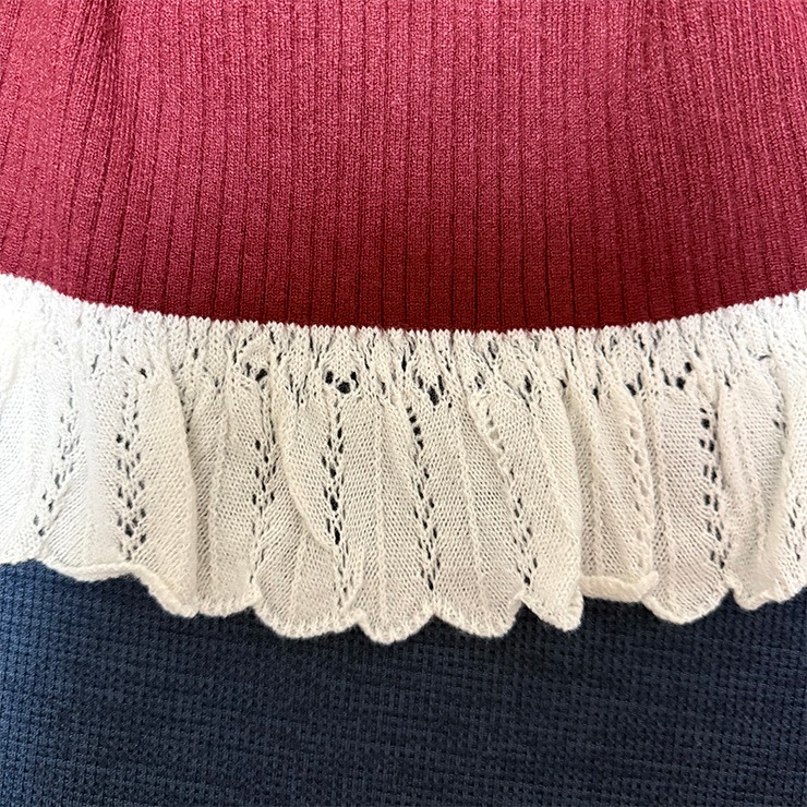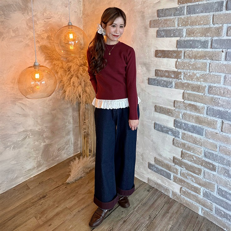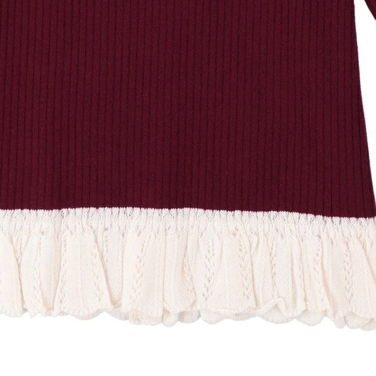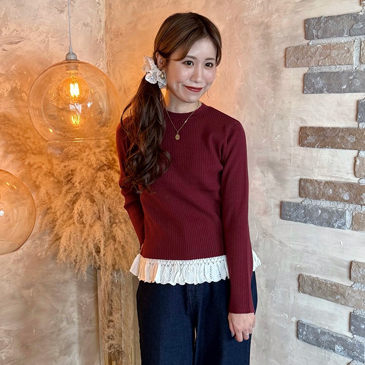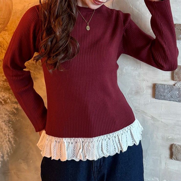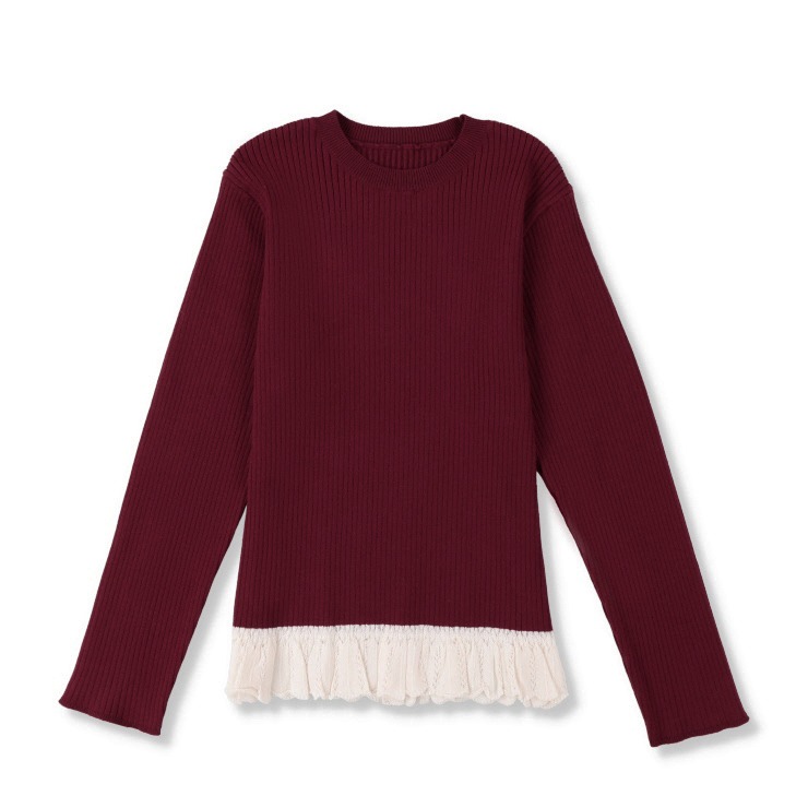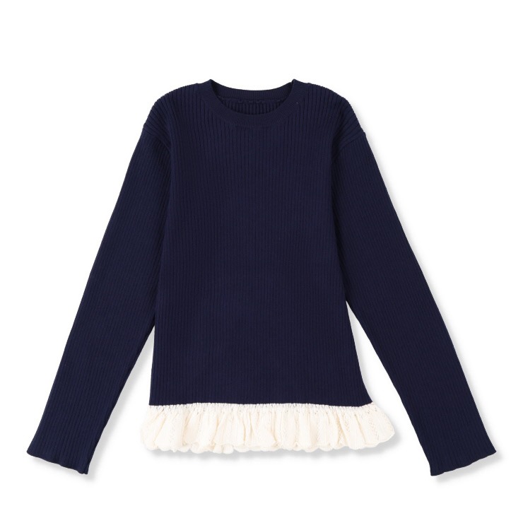 裾にニット素材のフリルがついた、シルエットの綺麗なリブニットプルオーバーです。
