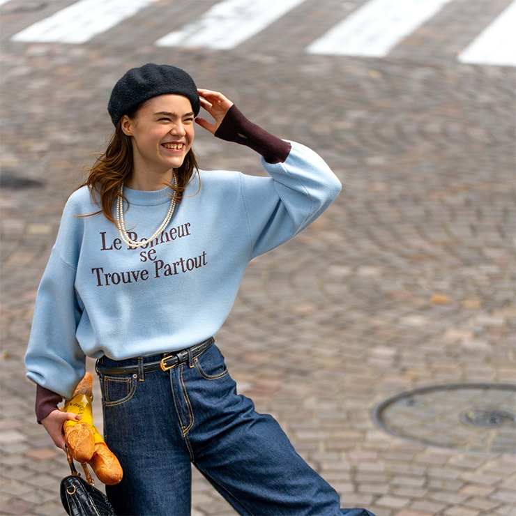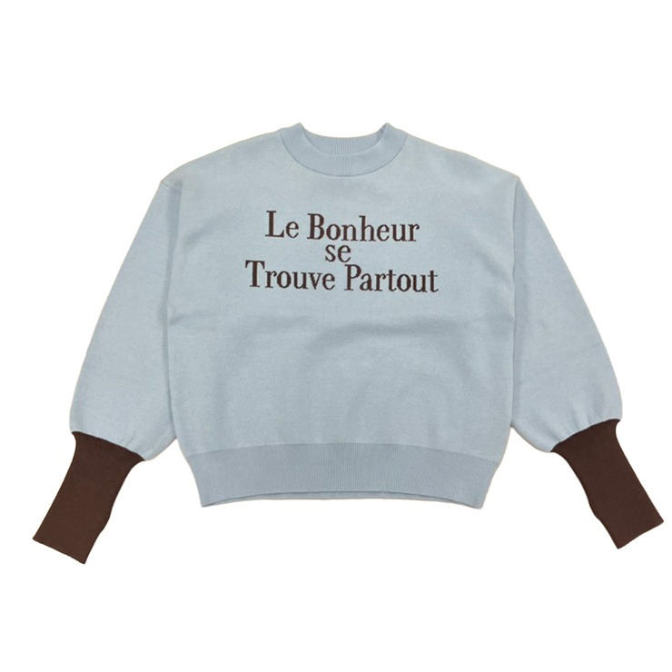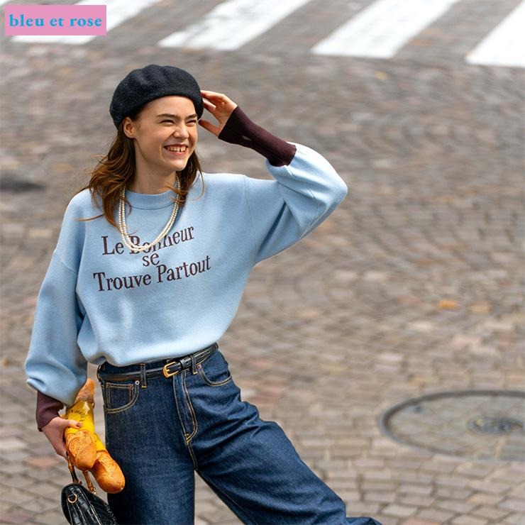 フロントのロゴが映える、フレンチムード漂うニットプルオーバー。