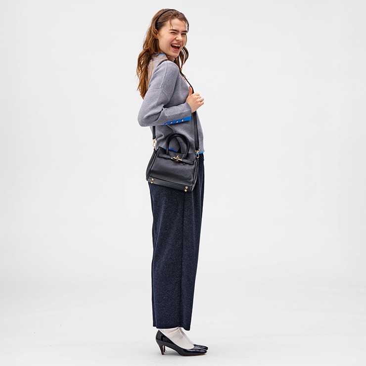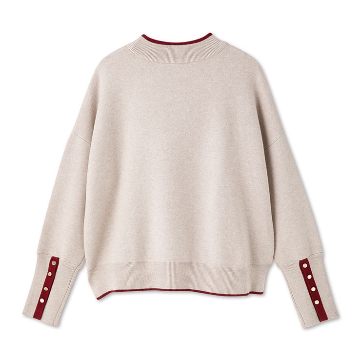 袖口に並んだメタルボタンと配色がさりげないコーデのアクセントに。