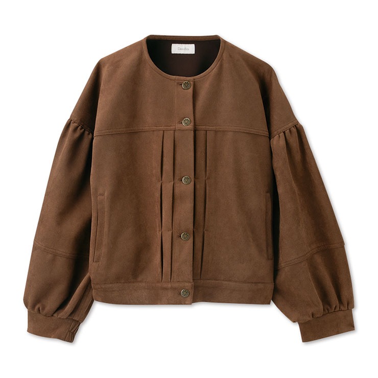 トレンドの微起毛素材のノーカーラーブルゾン。