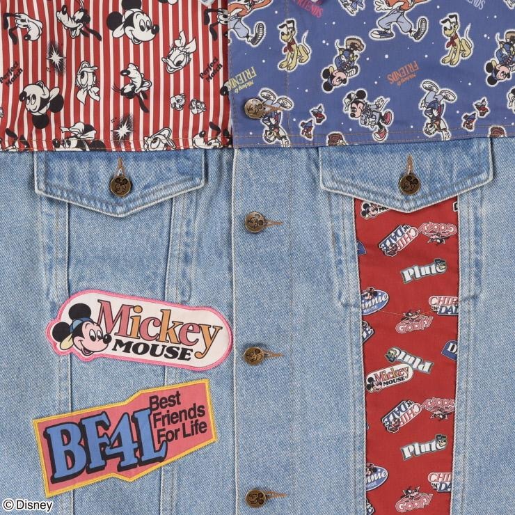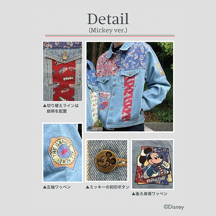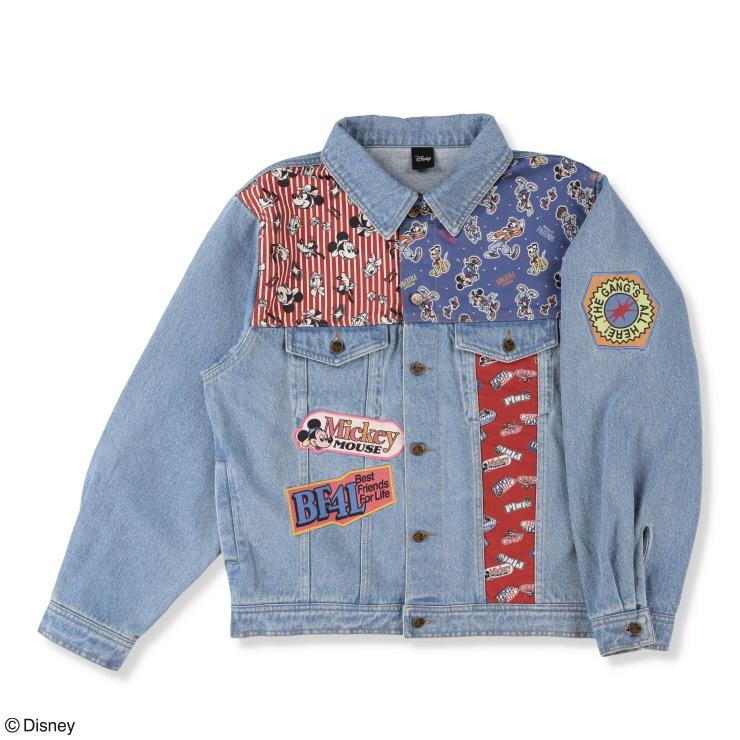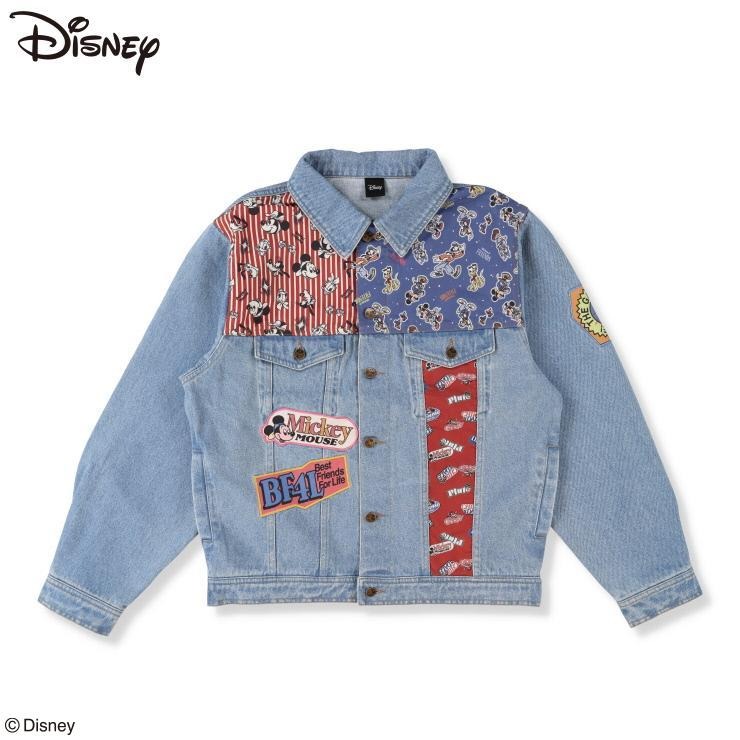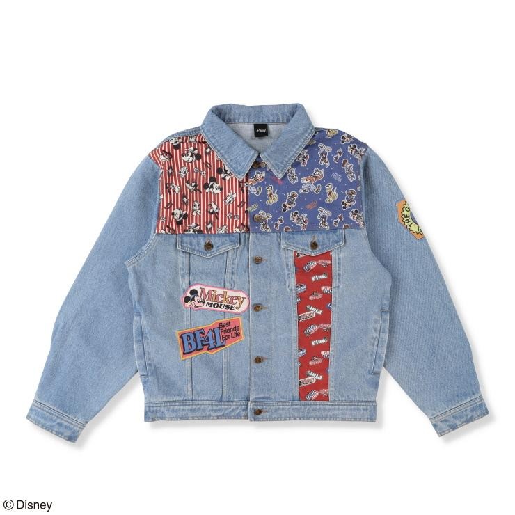 レトロな雰囲気のある「ミッキーマウス」パッチワークデザインのデニムジャケットです。