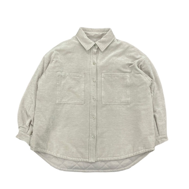 ゆるっとしたシルエットのシャツデザインの中綿入りアウター。