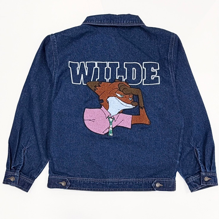 新作映画「ZOOTOPIA2」ニックをサガラ刺しゅうしたデニムジャケットです。