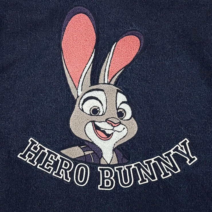 新作映画「ZOOTOPIA2」ジュディをサガラ刺しゅうしたデニムジャケットです。