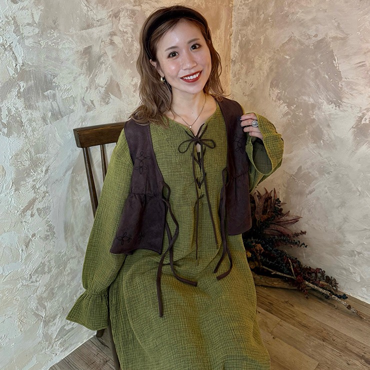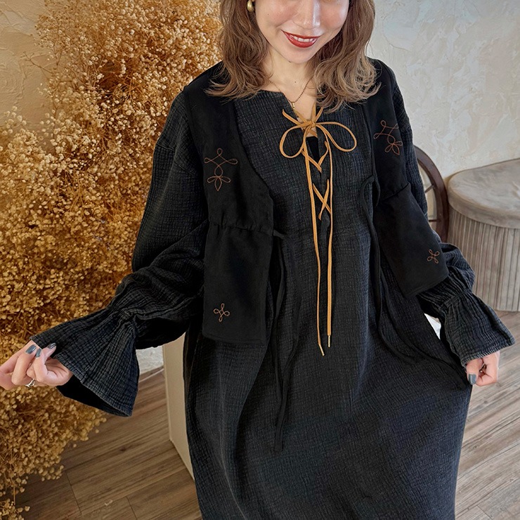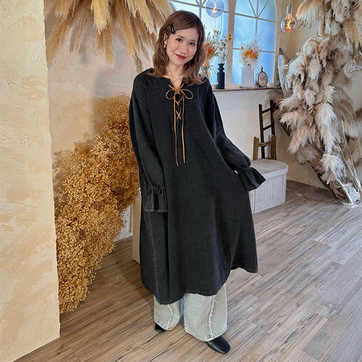 胸元のレースアップデザインが可愛く、抜け感も出ます。