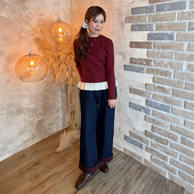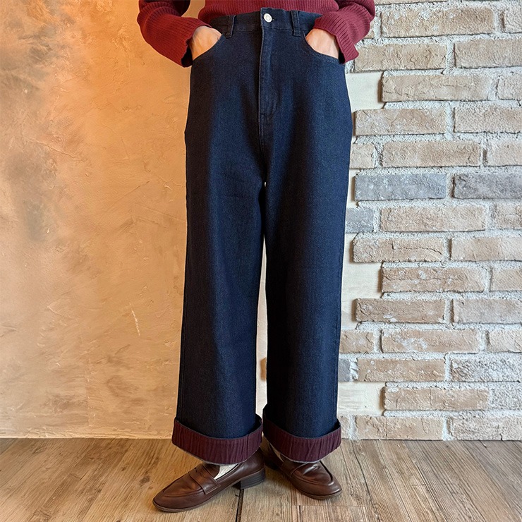 裾を折り返すとボルドーカラーが可愛いアクセントになっています。