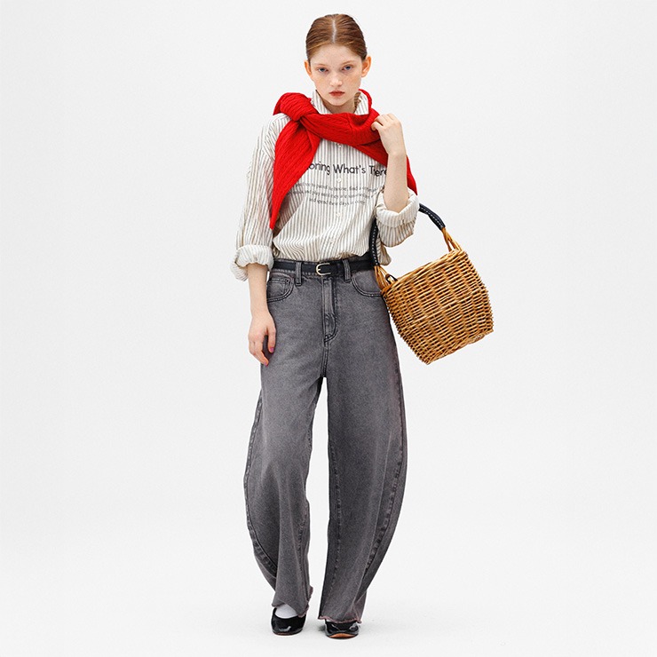 スッキリとした腰回りから絶妙のカーブで、ワイドながら美脚効果があります。