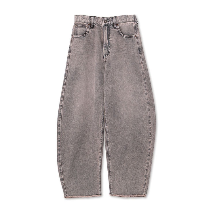 ブラックデニムにピンクのトッピングを加え、独特のヴィンテージ感のある加工が特徴のデニムパンツです。