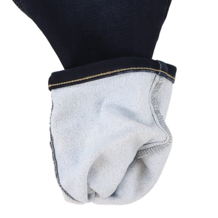 本格的なデニムパンツの加工感ながら、ストレッチが効いていて動きやすく、裏起毛になっていて、寒い冬にあったかい素材です。