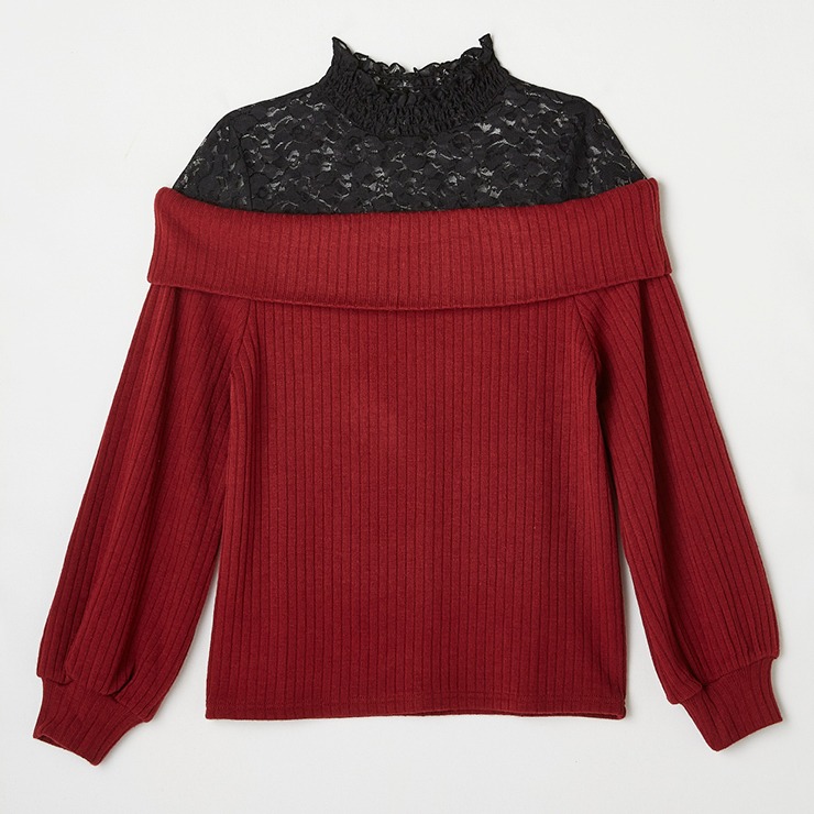 レーストップスをレイヤードしたようなオフショルプルオーバー。