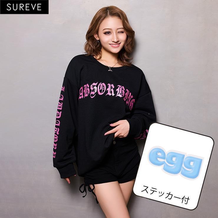 大きめのラメプリントが目を引くギャルらしいビッグトレーナー。