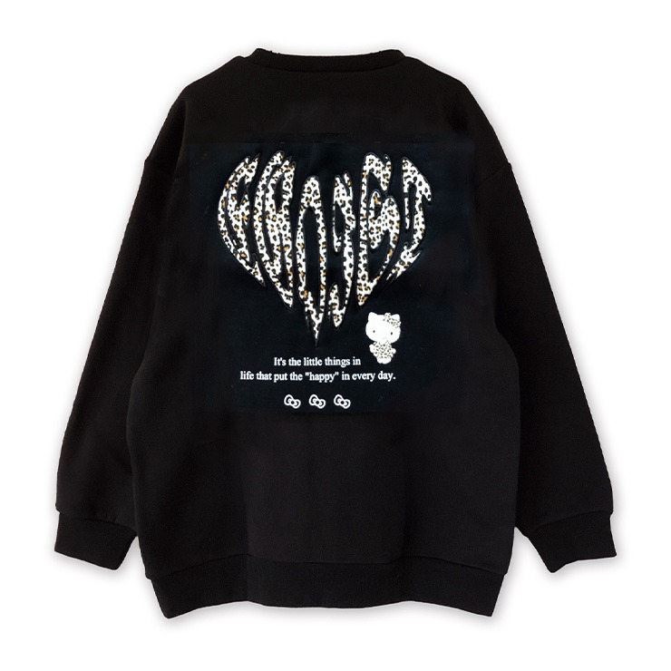 後ろにはヒョウ柄生地の貼り付けとハローキティの可愛いプリント入り。