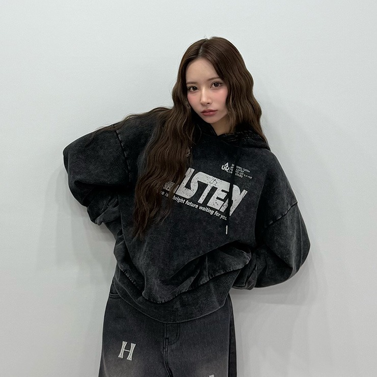 ヴィンテージ感のあるケミカルウォッシュが印象的なロゴパーカ。