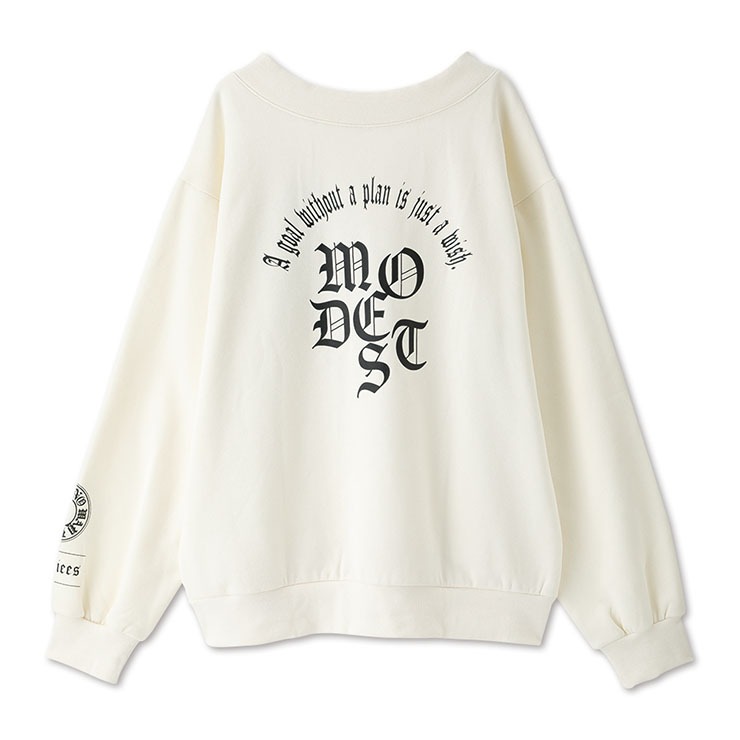 三か所にロゴプリントを施したインパクト抜群の裏起毛プルオーバー。