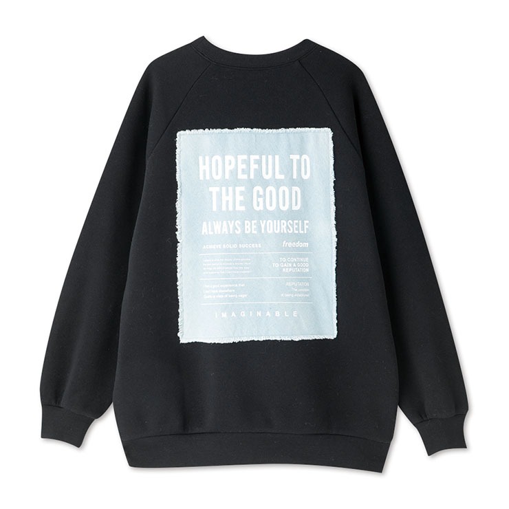 バックスタイルの、ビンテージ感のあるデニムにメッセージのグラフィックプリントが目を惹く1枚です。