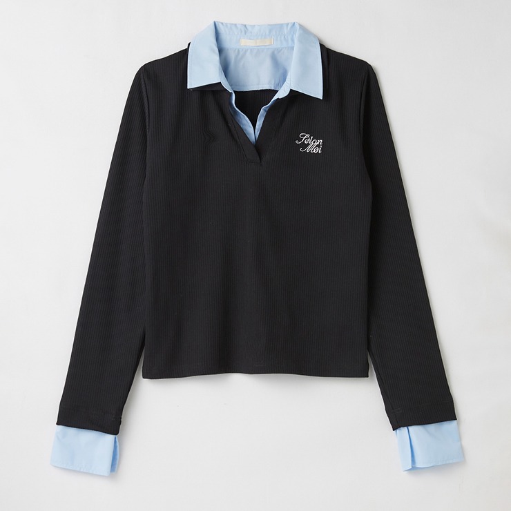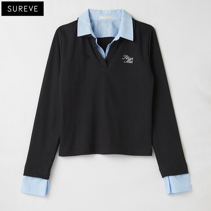 シャツとテレコがまるでレイヤードされているかのようなデザインで、一枚でコーデが完成する楽ちん&おしゃれアイテム。