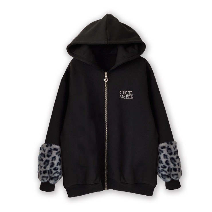 袖にはヒョウ柄ファー、ベルボア生地の貼り付けがとってもキュート。