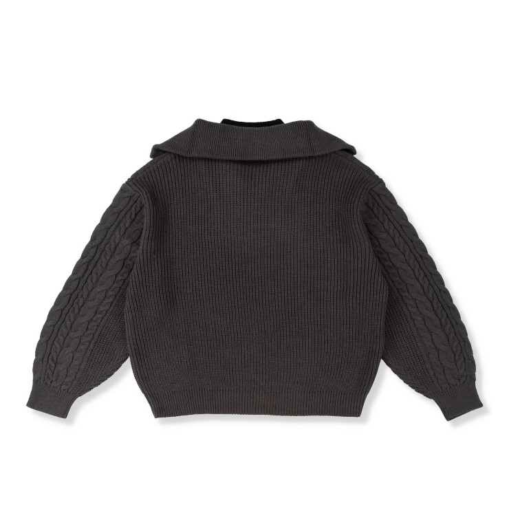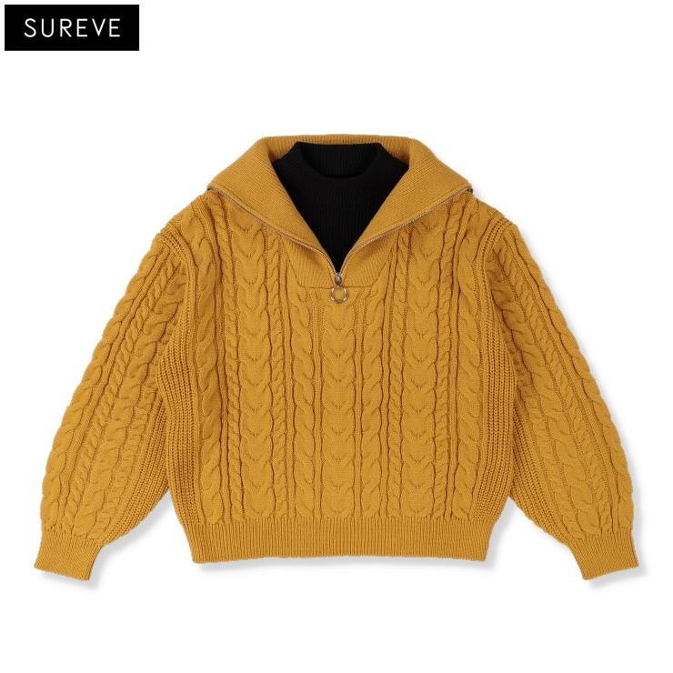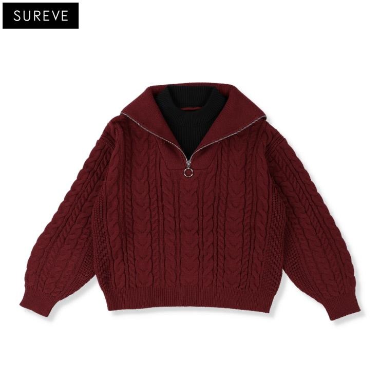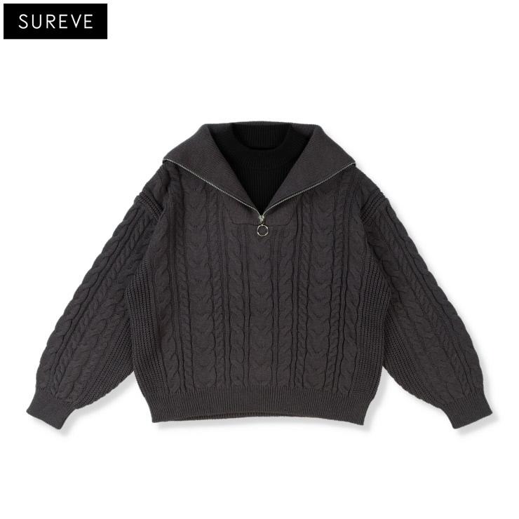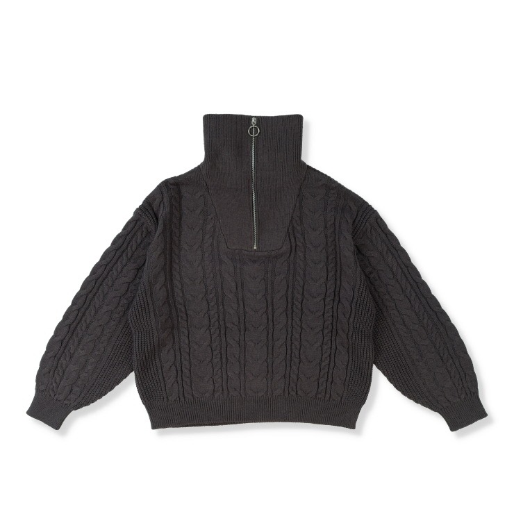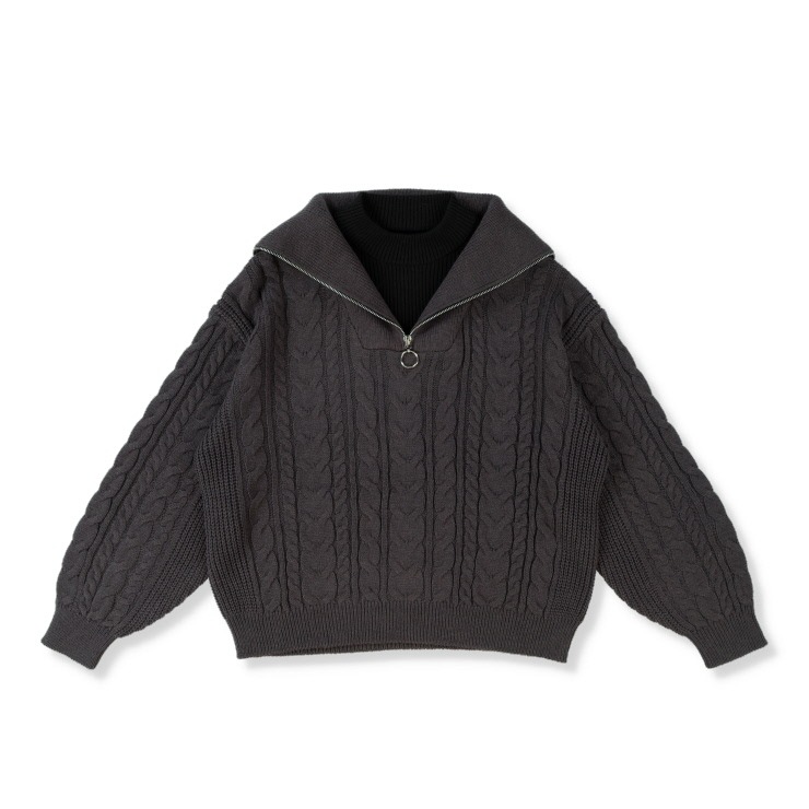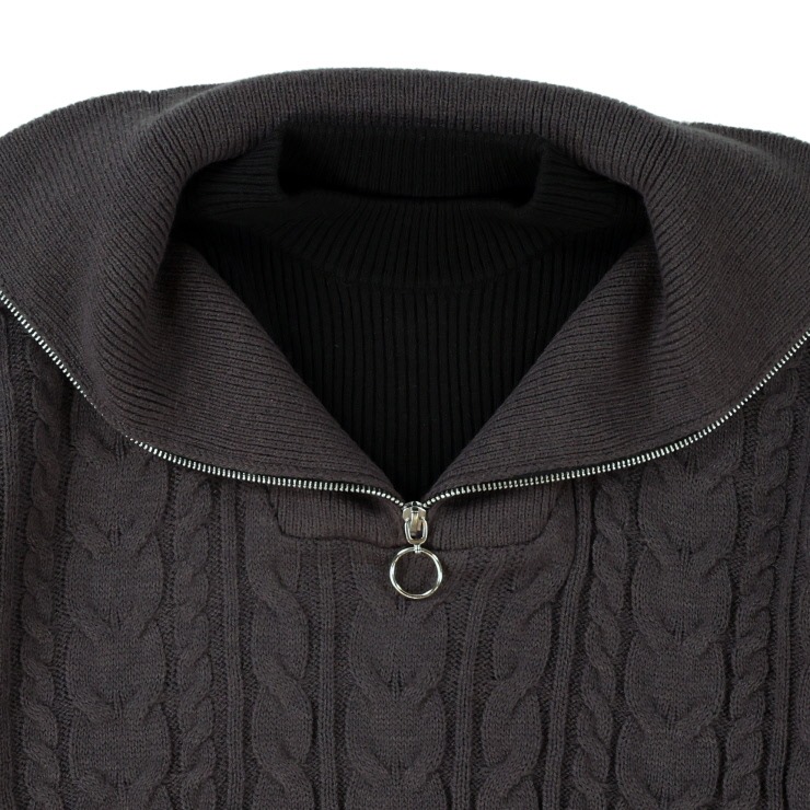 ざっくりとしたケーブル編みが特徴のハーフジップニットプルオーバー。