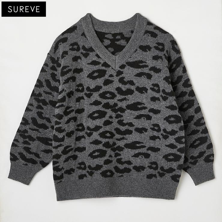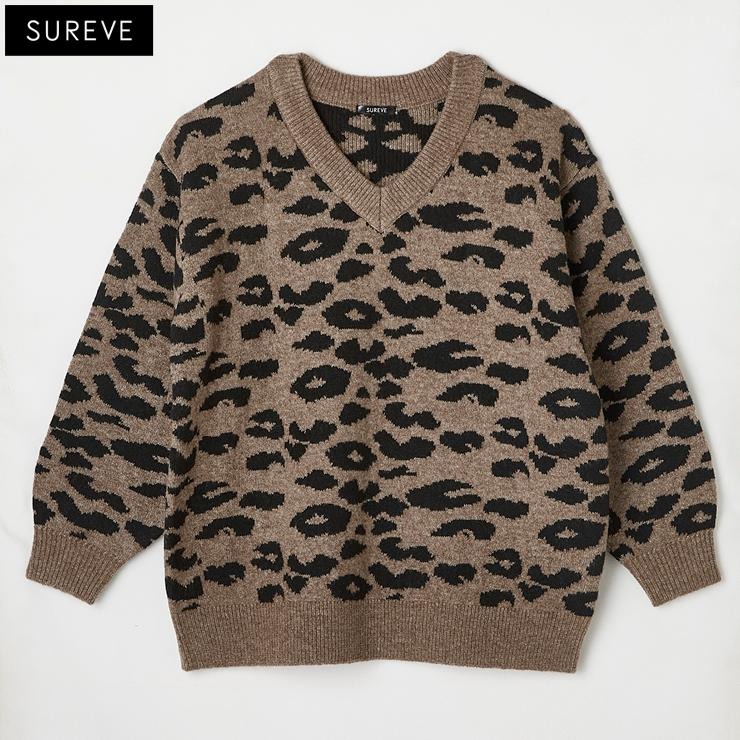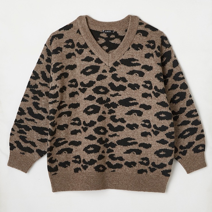 大胆なレオパード柄が目を惹くニットプルオーバー。