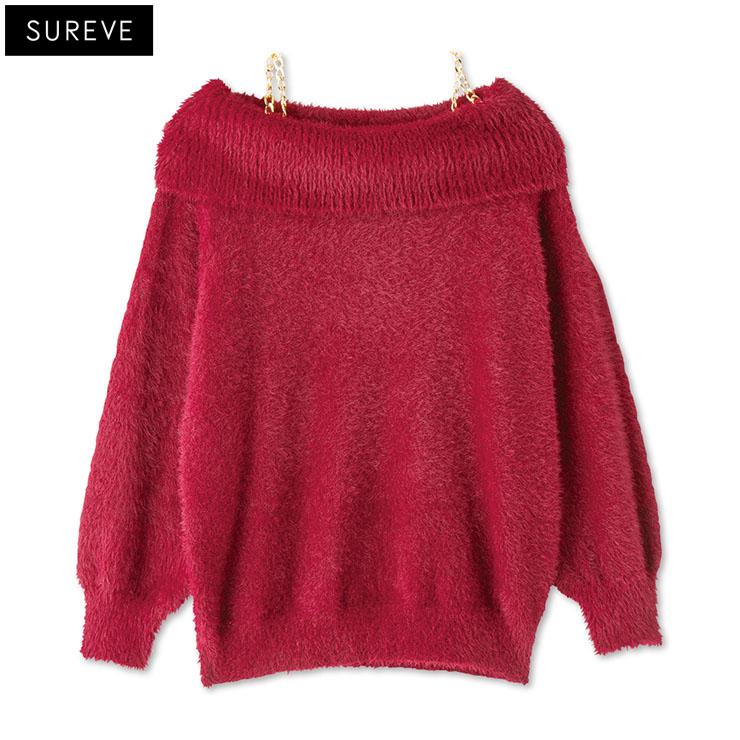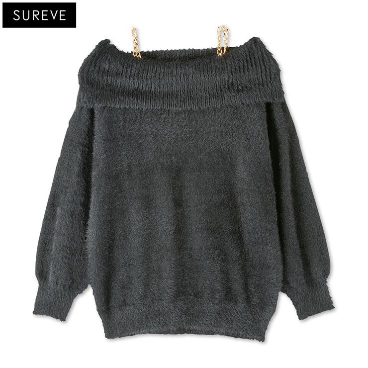 レディース チェーン使いオフショルニットプルオーバー(SUREVE)