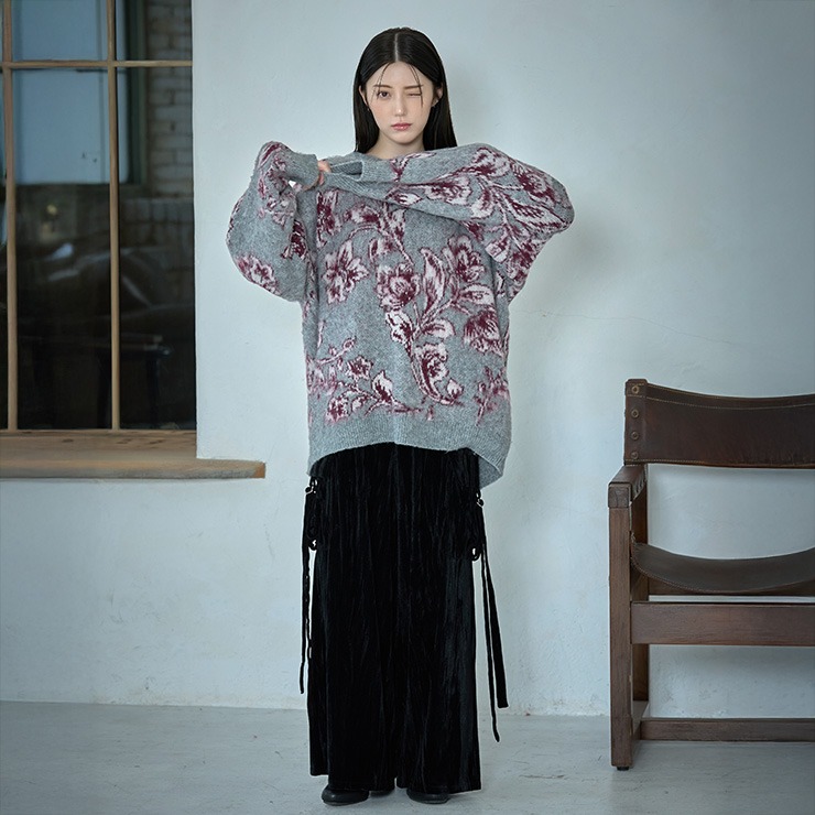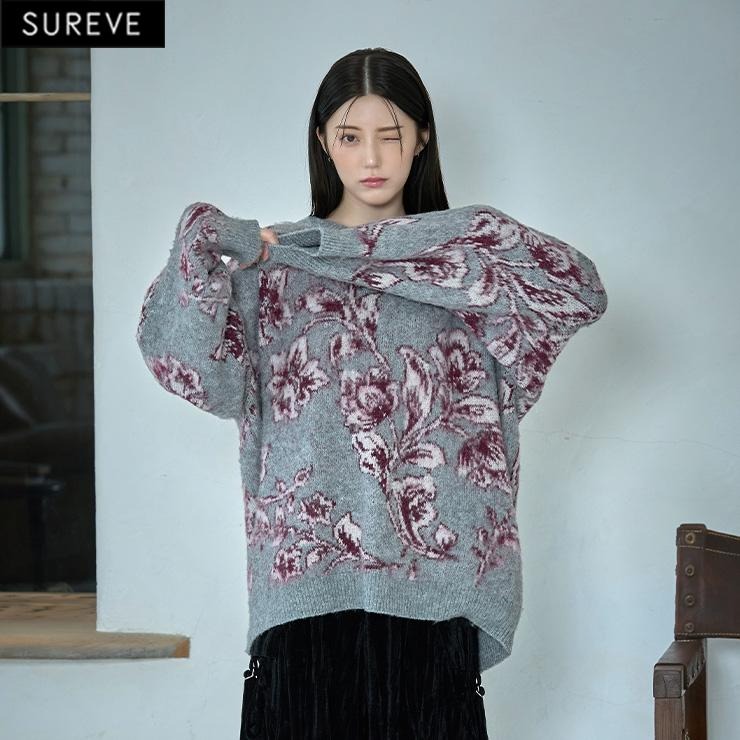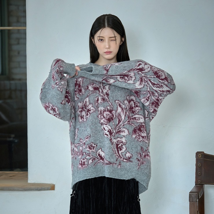大胆なフラワーパターンが目を惹く、ニットプルオーバー。