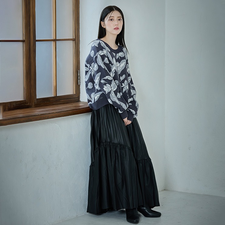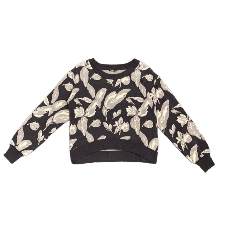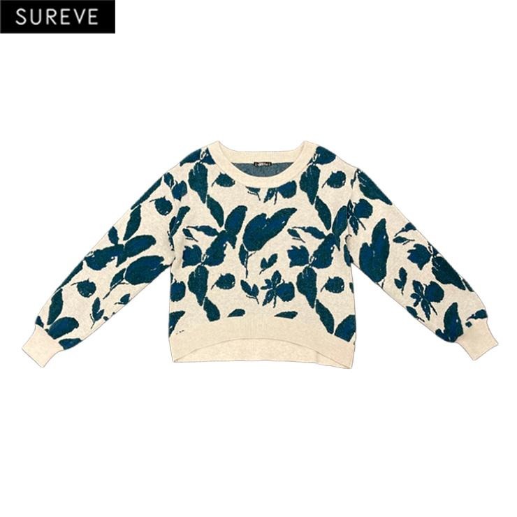 大胆なリーフ柄が目を惹く、ニットプルオーバー。