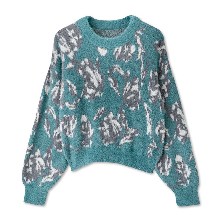 大胆なフラワーパターンが目を惹くニットプルオーバー。