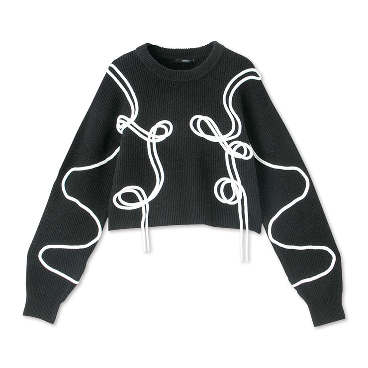 立体的なコード刺しゅうが遊び心を添えるデザインニットプルオーバー。