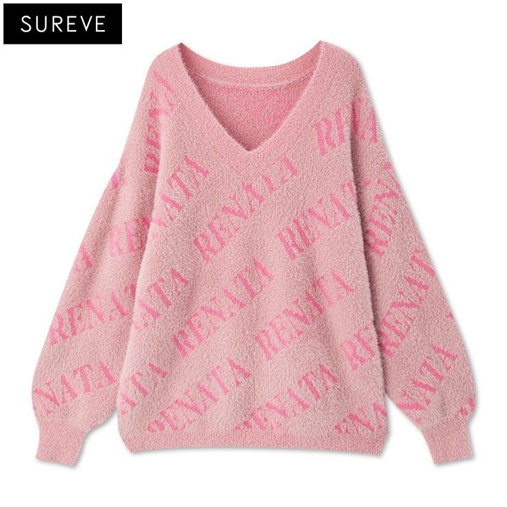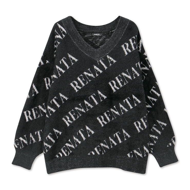 ふわっとシャギー素材が映える、斜めロゴニットプルオーバー。