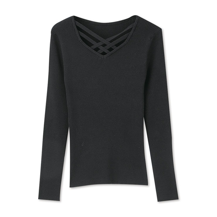 リブ編みなのでほどよく身体に沿い、スタイルアップが叶います。