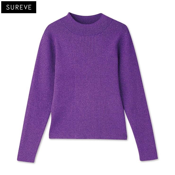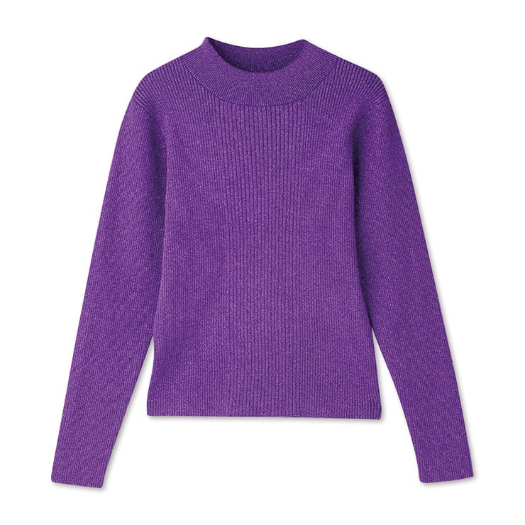 ラメの光沢がモード感漂うリブニットプルオーバー。