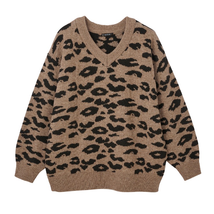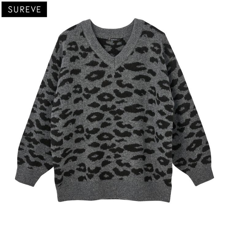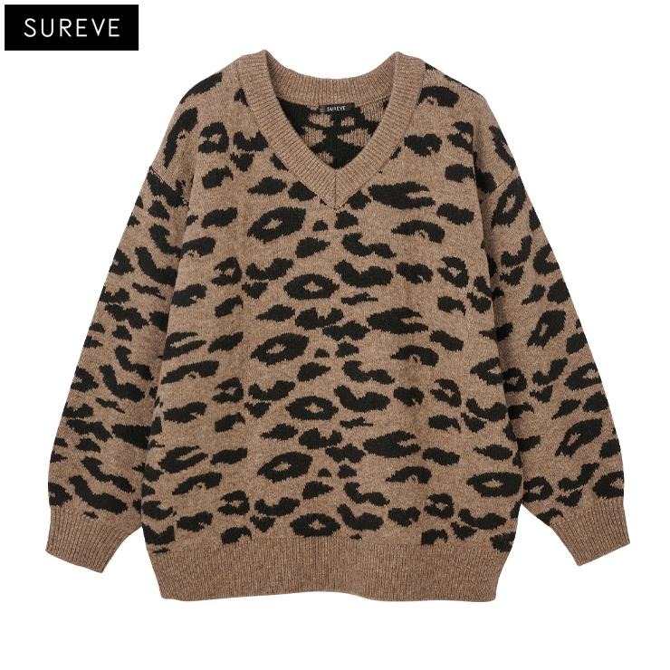 レディース ヒョウ柄ニットプルオーバー (SUREVE)