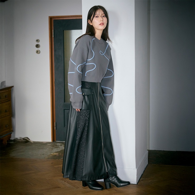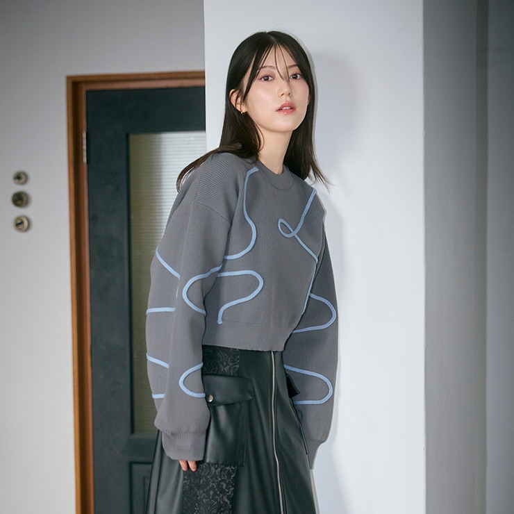 立体的なコードデザインが目を惹くニットプルオーバー。