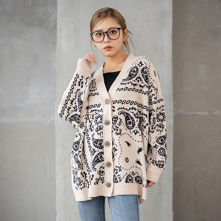 インパクトのあるペーズリー柄が特徴的なビッグカーデです。