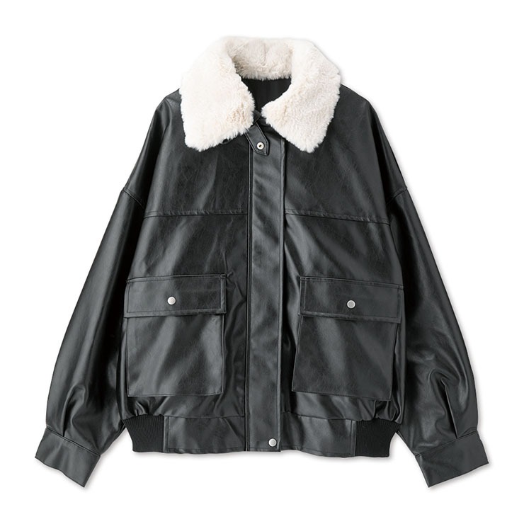 取り外し可能なティペットファー襟付きの合皮ブルゾンです。