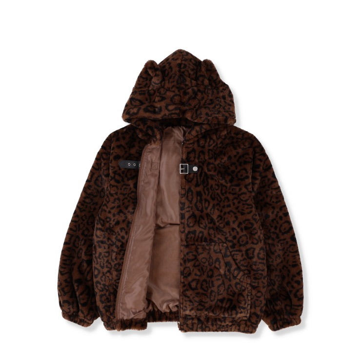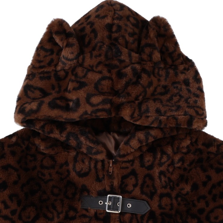 ふわふわの毛足長めファーを使用した、インパクト抜群のネコミミフード付きブルゾン。