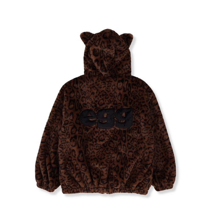 フロントはファスナーに加えて合皮ベルトをあしらい、後ろ見頃には「egg」ロゴワッペンをオン。