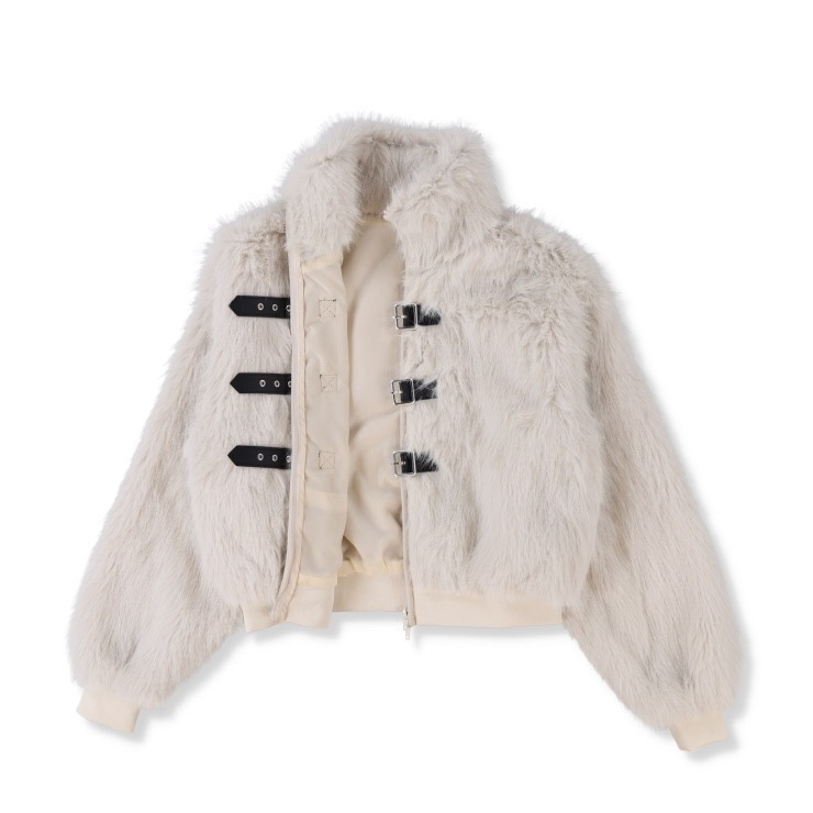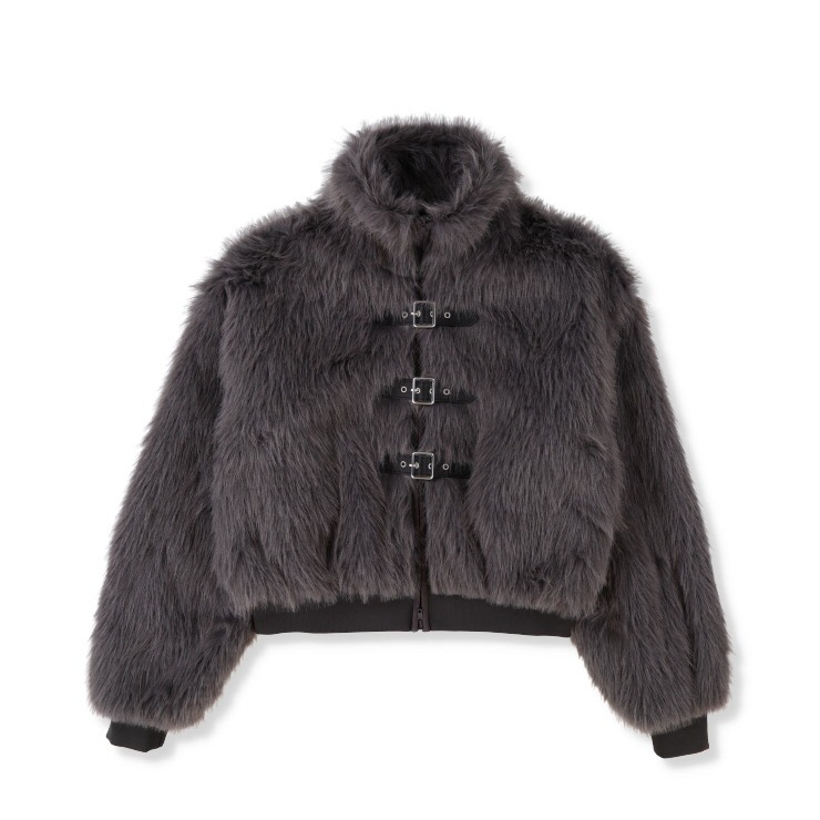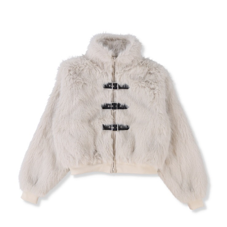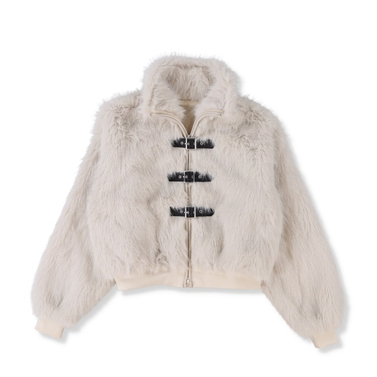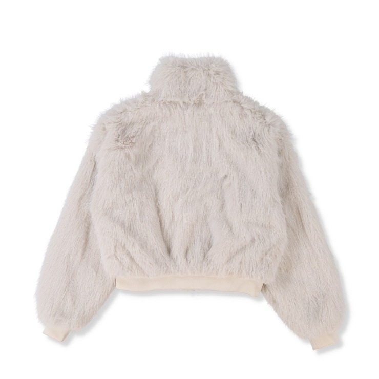 首元まで暖かいスタンドネックデザインのファーブルゾン。