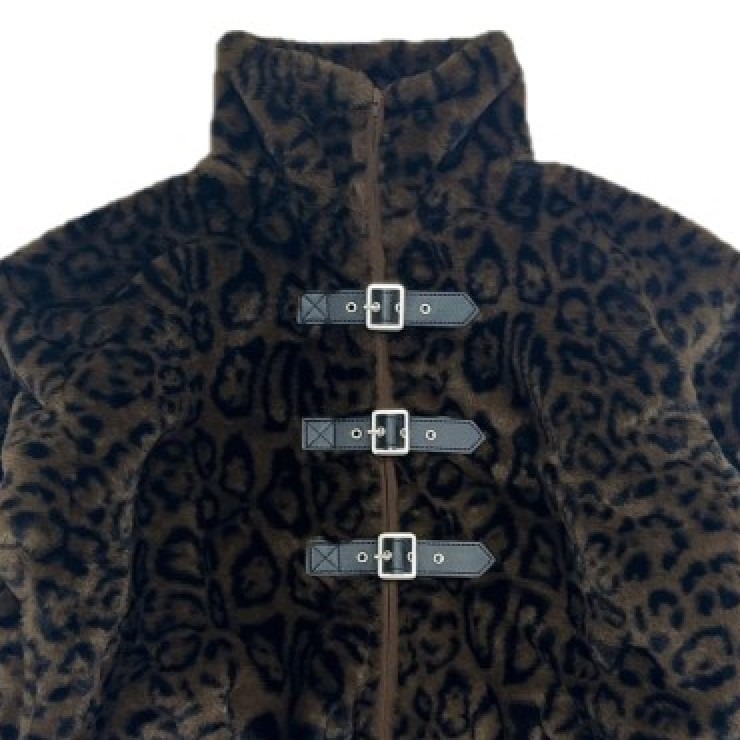 フロントにはファスナーと合皮ベルトを3か所施し、モード感のあるスタイルに。