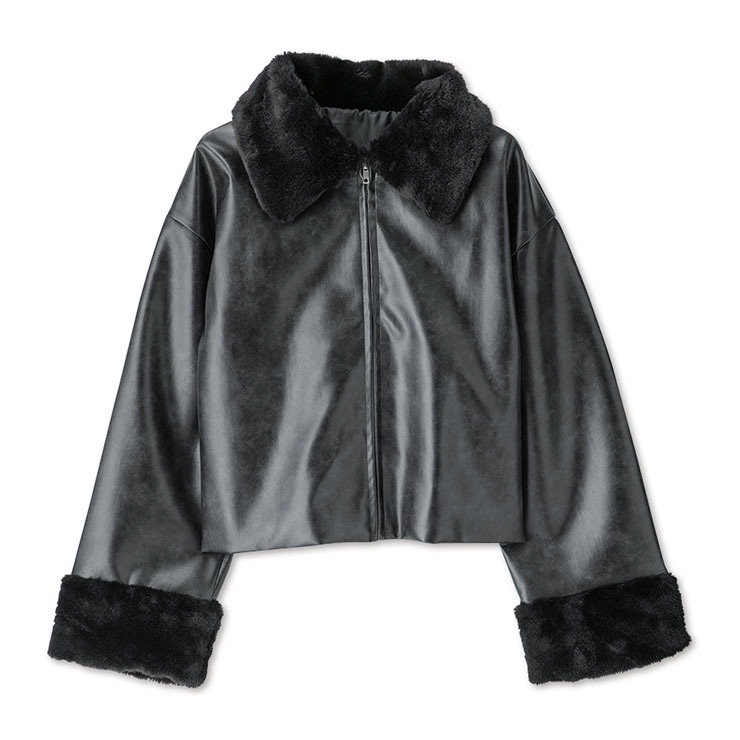 襟元のファーがカジュアルに見えがちなフライトジャケットをシックな雰囲気に◎