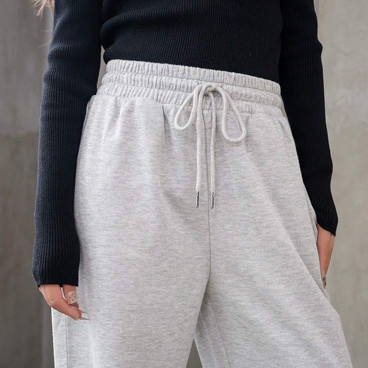 ラメ感のある素材が華やかな印象を与える裏起毛パンツ。