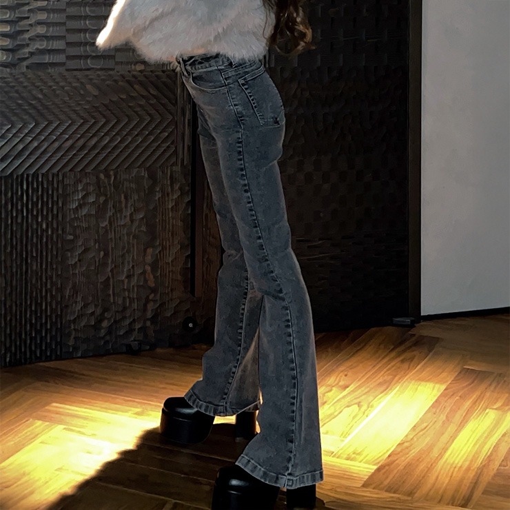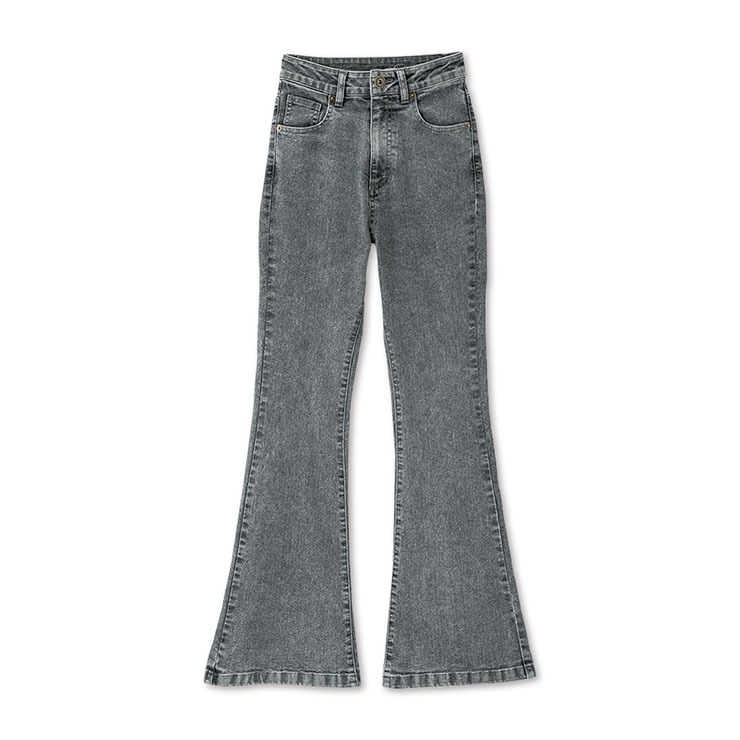 裾に向かって広がるシルエットが美脚効果のあるフレアデニムです。