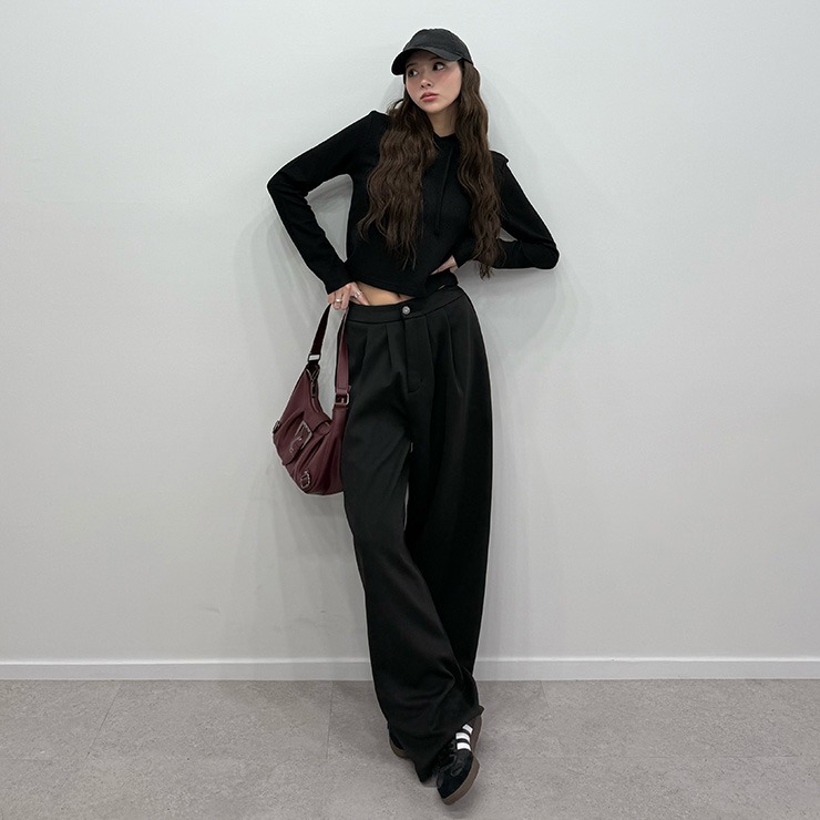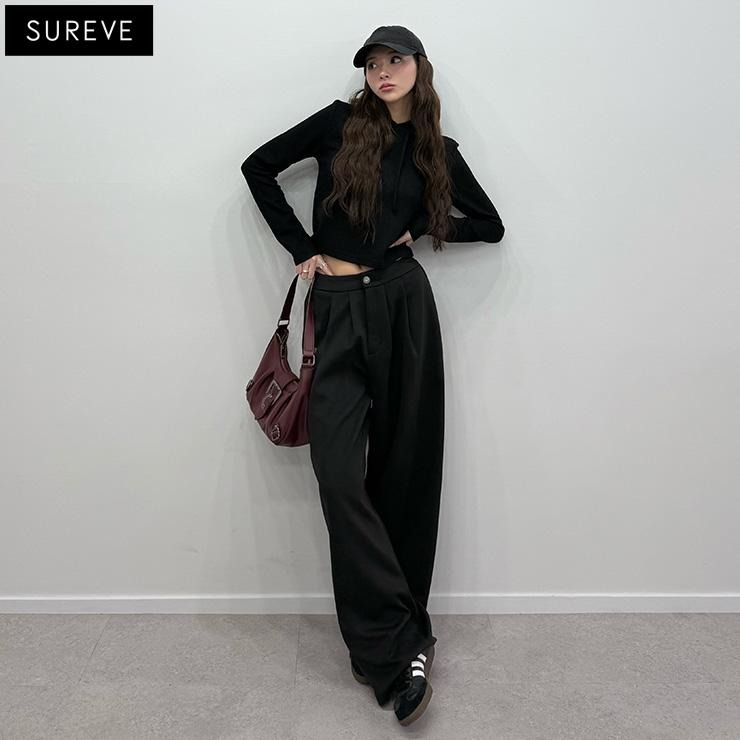 タック入りのワイドシルエットが、カジュアルながらもきれいめな印象をプラス。