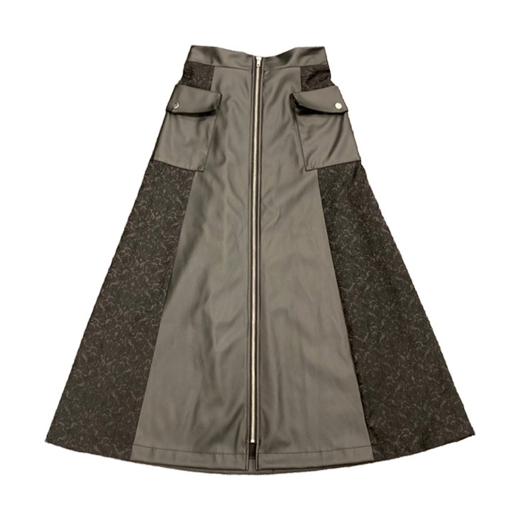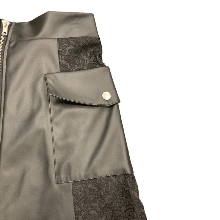 SUREVE BLACKで売れ筋定番のカーゴZIPスカートが合皮&ジャガード切替えでA/Wバージョンで登場!合皮素材でよりマニッシュで大人っぽい印象に…◎