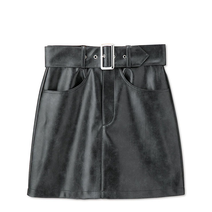 ヴィンテージライクな合皮素材を使用しながらも、ソフトな素材感で高級感あるタイトミニスカート。