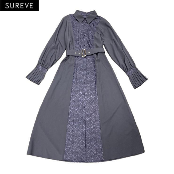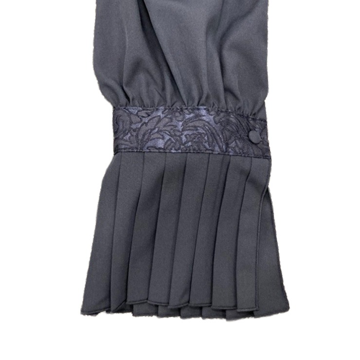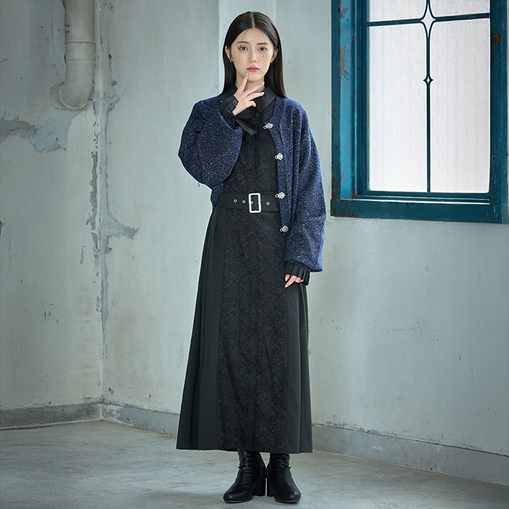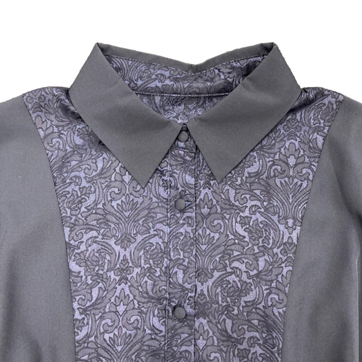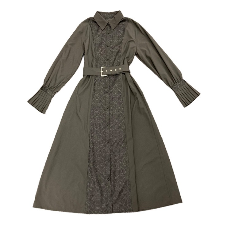 ダマスク柄のジャガード素材の切替と袖口のプリーツカフスがポイントのワンピースです。