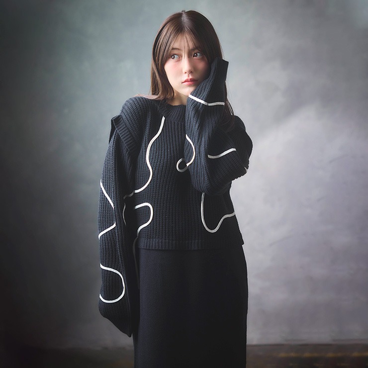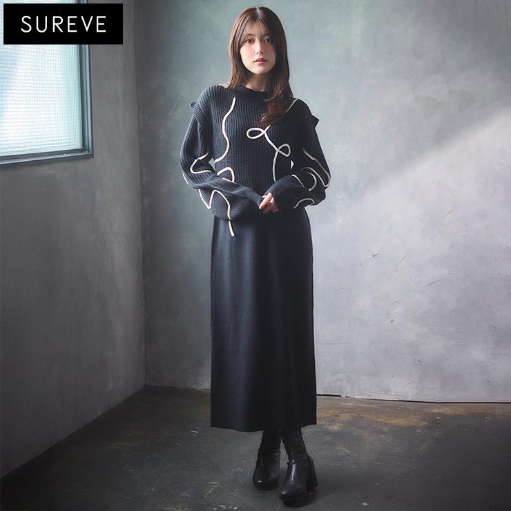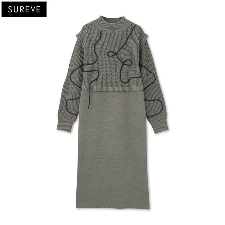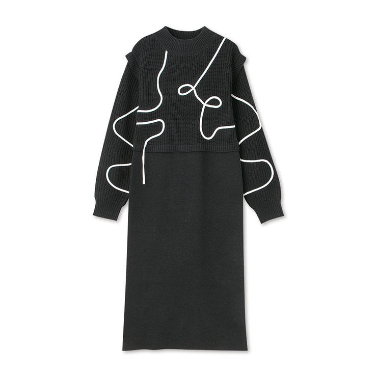 立体的なコードデザインが遊び心のあるニットワンピース。