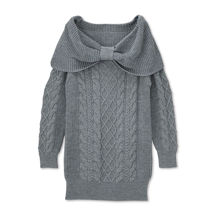 立体感のあるケーブル編みが上品で、シルエットをすっきり見せます。