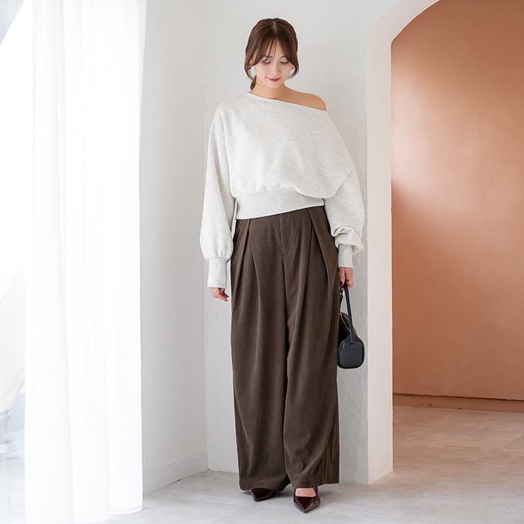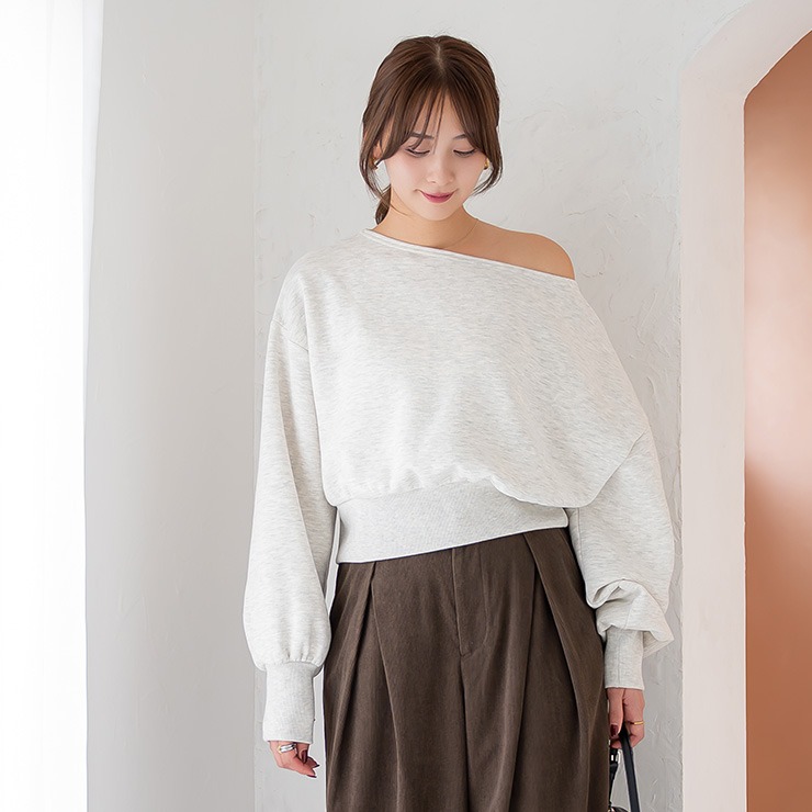 裏毛裏起毛素材を使用した、あたたかみのあるオフショルプルオーバーです。